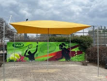 Liebe Tennisfreundinnen und -freunde, es ist geschafft! Das Sonnensegel auf der Freifläche vor dem Tennishäusle ist montiert worden. Nachdem uns